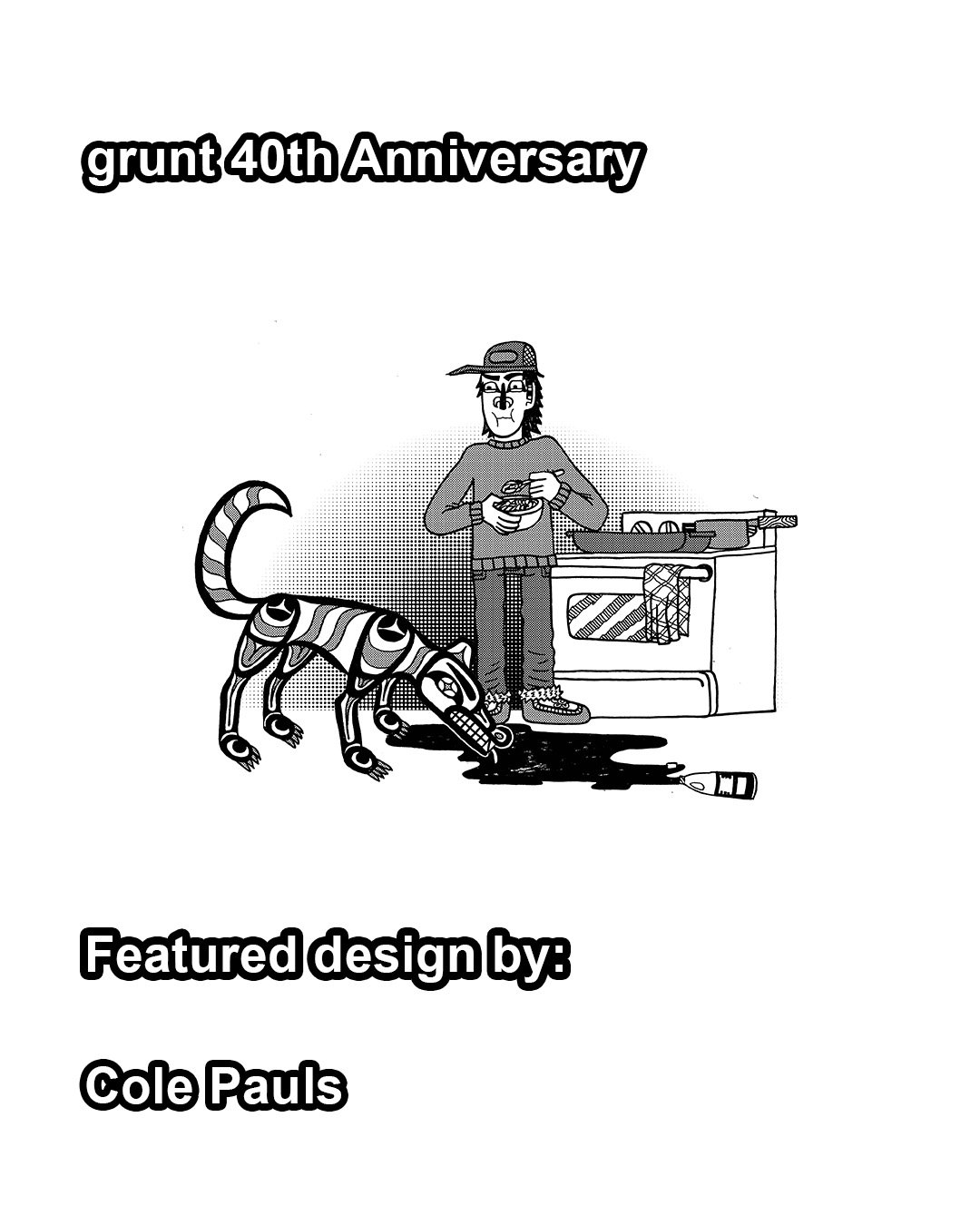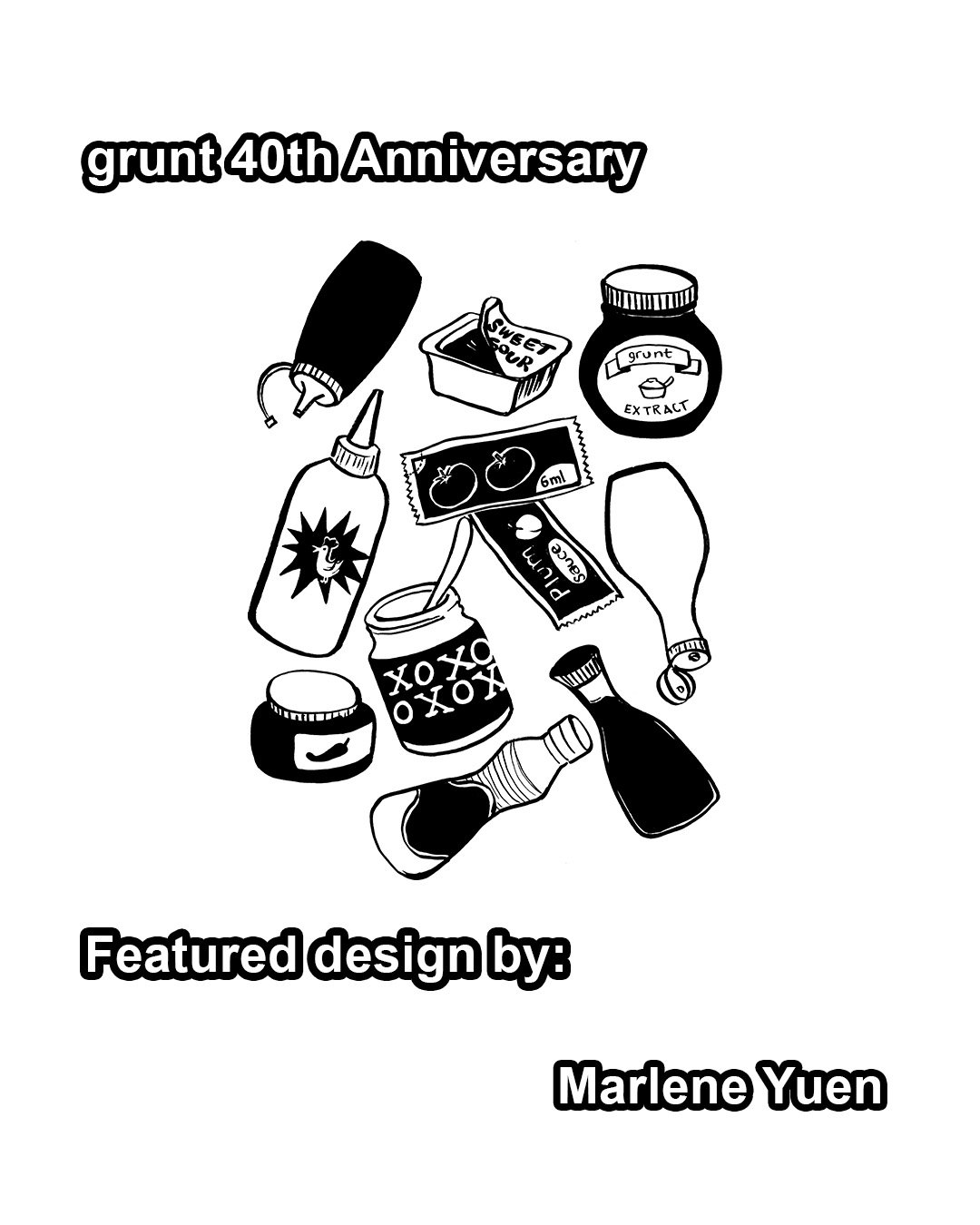In celebration of grunt's 40th anniversary, we have commissioned designs from local artists, Cole Pauls and Marlene Yuen on 100% cotton black totes screenprinted in-house by Blim, a beloved print shop located in Vancouver's Chinatown. There is a large white graphic featuring Cole or Marlene's design on one side of the tote bag and a small grunt logo centered on the other side of the tote bag.